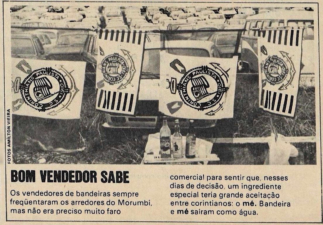 Além disso, uma minuciosidade como essa, dos vendedores de porta de estádio que ofereciam as bandeiras e o "mé", é precioso demais para não ser mostrado. Ainda hoje, com a proibição de bebidas alcoólicas em São Paulo, o tal "mé" é vendido nas redondezas do estádio. Já as bandeiras, foram trocadas pelas faixas, camisas e afins.