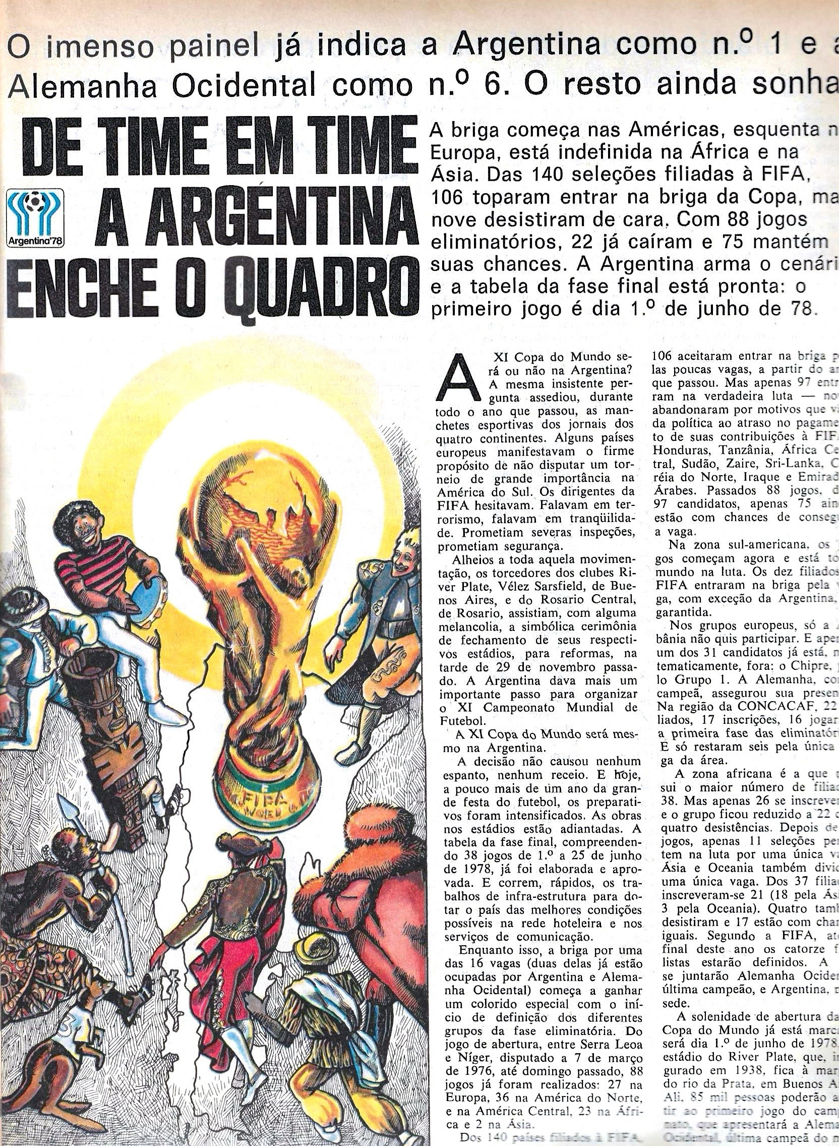 Como dito, a revista aborda um pré copa, que foi polêmico não somente pela formação do time brasileiro e suas dúvidas, mas também por uma incerteza da realização no país sede, a Argentina. Durante o período, os Hermanos viviam um período ditatorial liderado por Jorge Rafael Videla, que enxergava no evento duas oportunidades, garantir de certo modo a primeira estrela da seleção, e encobrir graves violações de direitos humanos, torturas (ocorridas próximas ao estádio Monumental).
