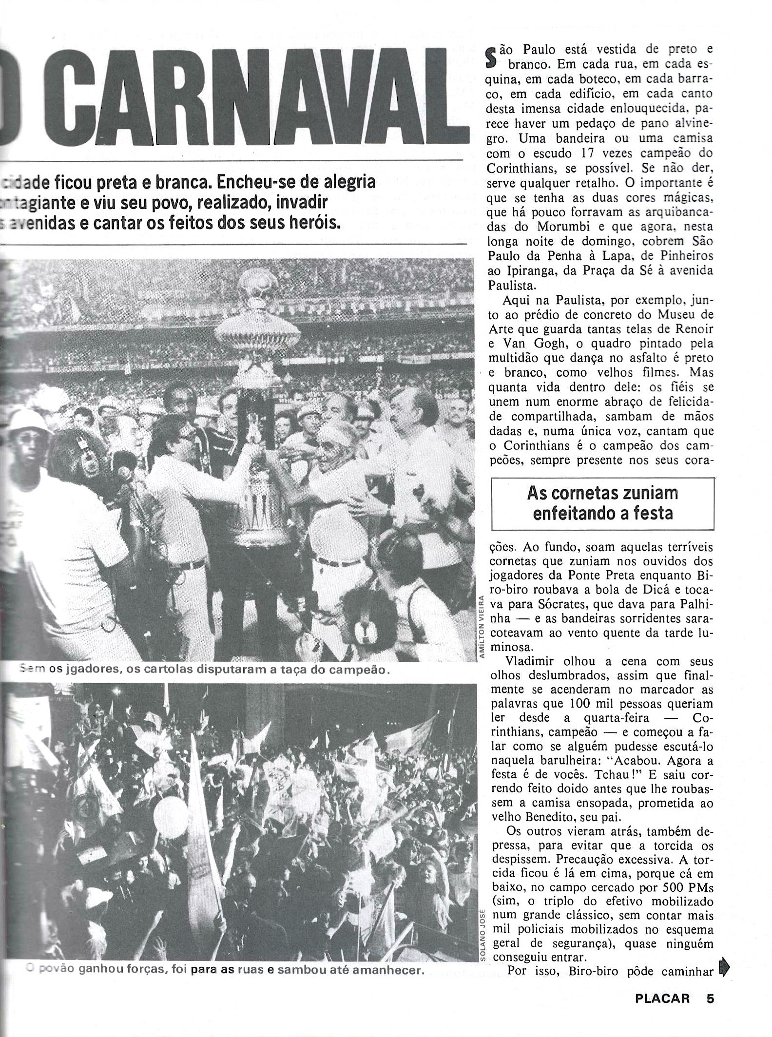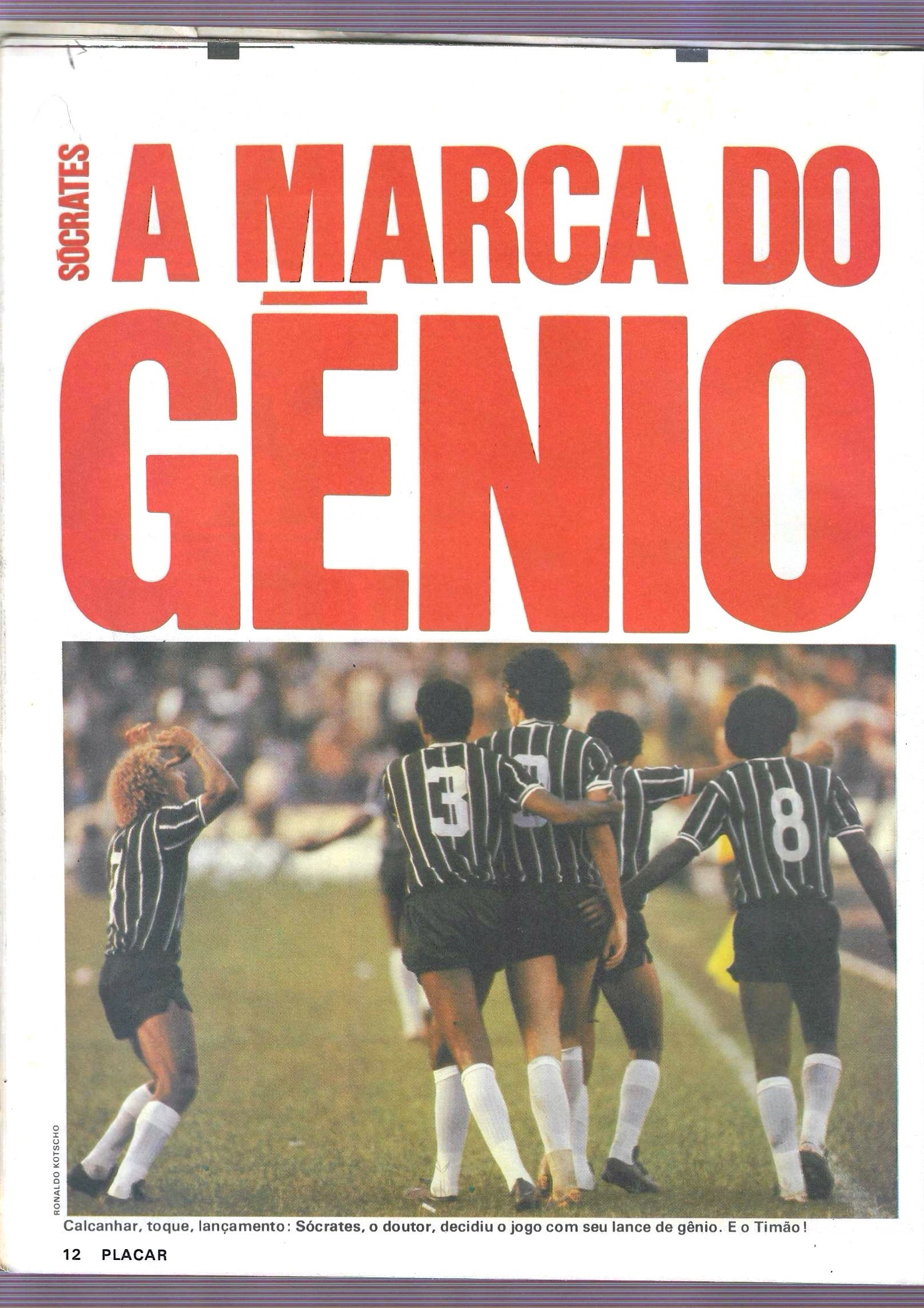 Partindo para a segunda revista, de 1980, logo no início essa contemplação ao Doutor e gigante Sócrates. Aqui, o episódio relatado é a vitória do Corinthians no Campeonato Paulista de 79 (Sim, com a final em Fevereiro de 90). Destaco além do Sócrates, essa diagramação, cor, foto, fonte, tudo impecável.